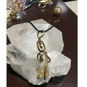 Cuarzo citrino, engarzado con alambre de cobre.